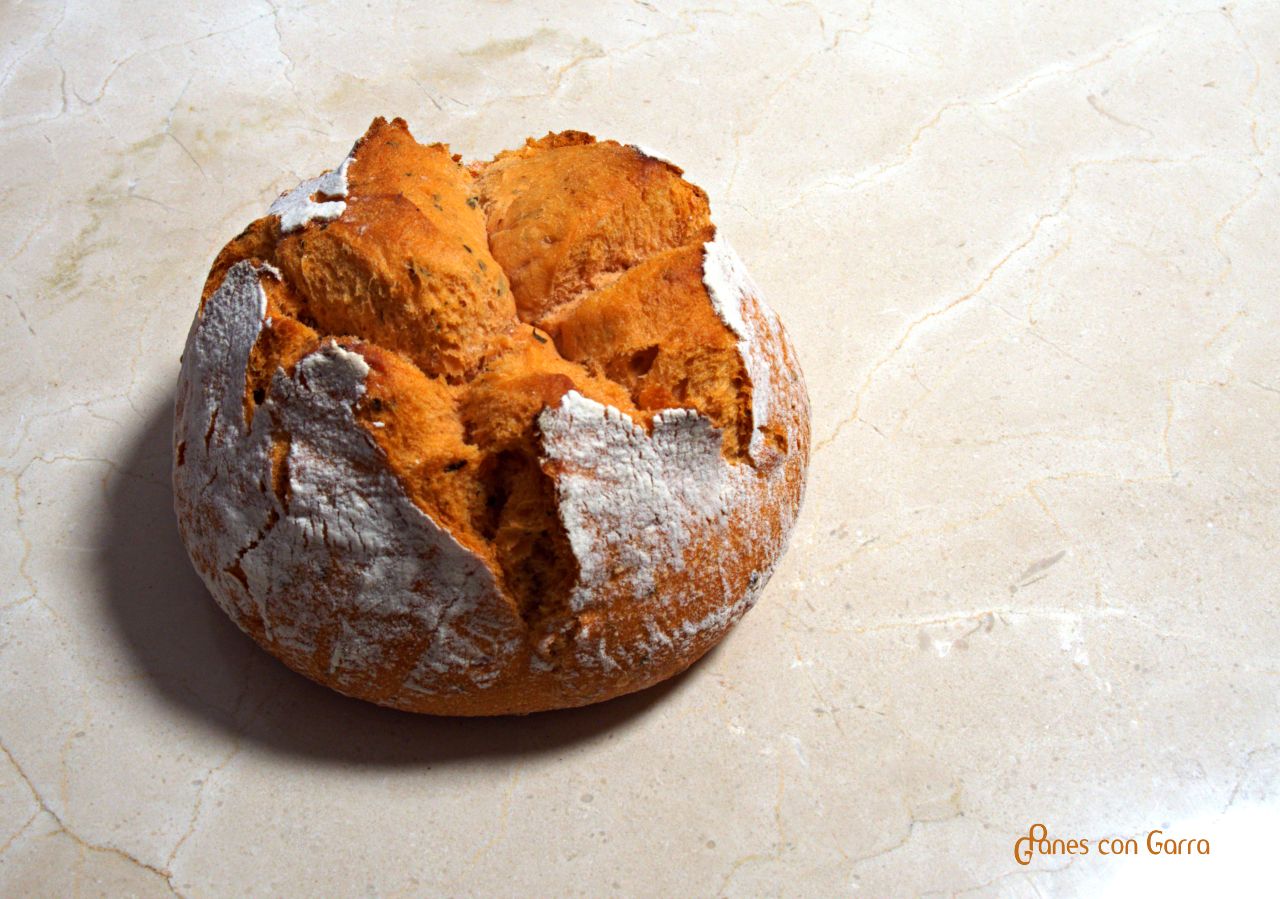 Un pa de pagés dado la vuelta dos veces…y es que a estas alturas sabrás que lo que la mayoría de las cosas que se hornean en Panes con Garra no son nada comunes pero si me baso en fórmulas de panes conocidos…pero dándole mi punto de originalidad. Por eso cada vez que tengo oportunidad, investigo, saboreo y formulo alguna receta nueva inspirada en alguna ya conocida. Especias, condimentos o alguna aromática es lo que suelo usar a menudo; y otras veces apuesto más por ingredientes tipo tropezones; como aceitunas, algún queso o incluso embutidos…