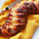 - Saca del horno y presenta la plancha (y su papel) sobre un paño limpio y enrolla el bizcocho junto al paño. Debe quedar prieto y sellado.